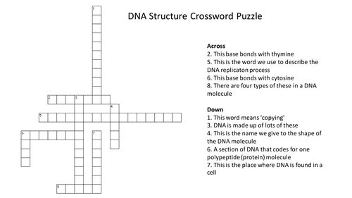 Dna Crossword Puzzle Quizlet / Click card to see the definition.. Dna from skin cells transferred by simple contact. Get your daily dose of crossword puzzles here first. Adenine, cytosine, deoxyribose, deoxyribose nucleic acid, double helix, genetic, guanine, messenger, nitrogen, nucleotide, phosphate, protein, rosalindfranklin, thymine, uracil, watsonandcrick. Compete against your friends to see who gets the best score in this activity. Modify with your own questions and answers.