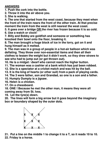 Lateral Thinking Puzzles With Answers / All access to lateral thinking puzzles with answers pdf.. Here are the answers to the lateral thinking puzzles page. Lateral thinking puzzles are a great way to practice problem solving skills programmers use every day. The puzzles as stated generally do. He was hoping that drinking a glass. What is the next letter in this sequence: